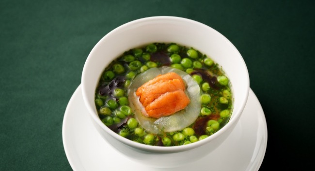 甜豆薄荷海膽蒸蛋